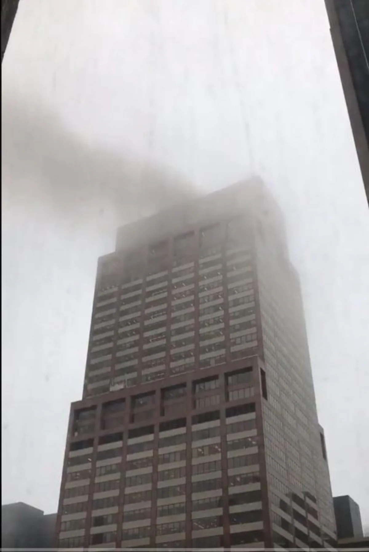 Video of smoke rising from the roof of a building in Manhattan after a helicopter made a hard landing on the roof and caught fire#Manhattan #NewYork pic.twitter.com/5QFgLUKu44