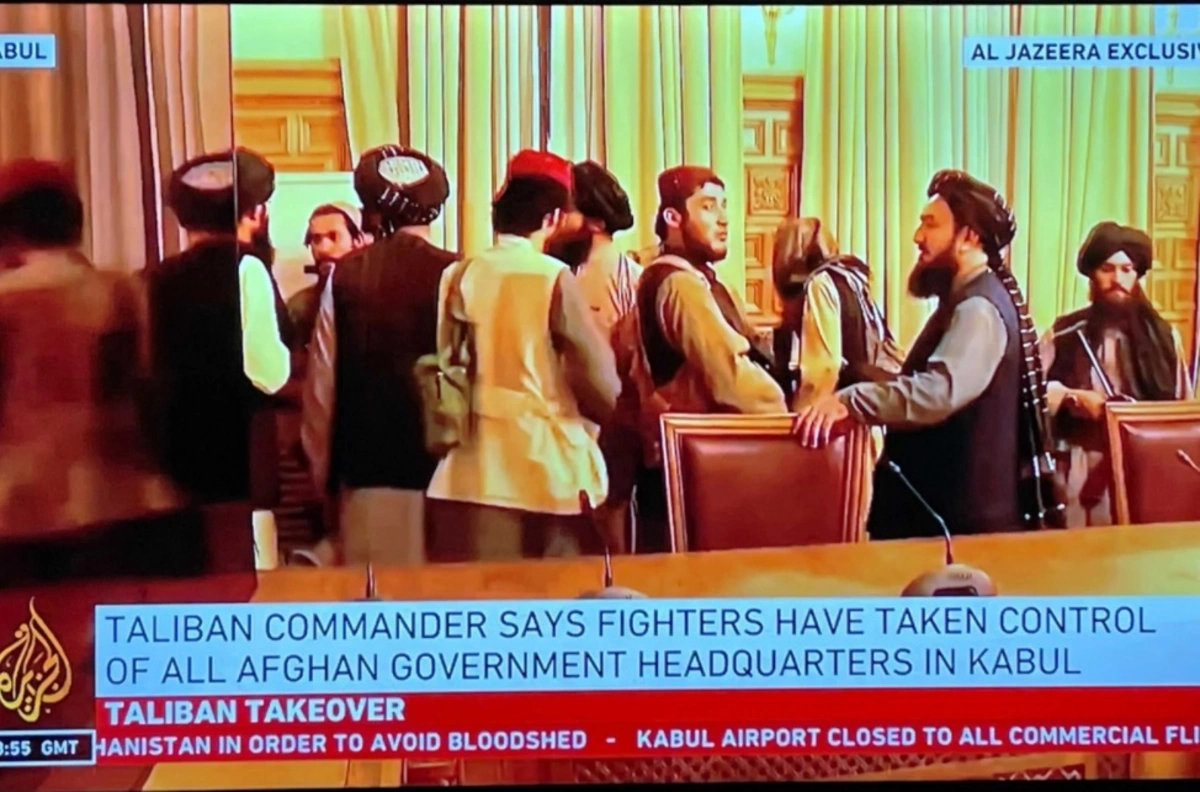Kadrlarda onlarla silahlı şəxslə əhatə olunmuş “Taliban” rəhbərliyi göstərilir. Onlar saraydakı görüş otaqlarını ziyarət edir və eyni zamanda masalarda otururlar.