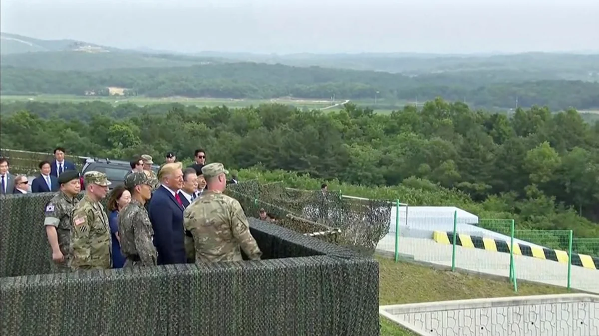 Tramp və Mun Çje İn hərbsizləşdirilmiş zonadakı müşahidə məntəqəsindən KXDR-in mövqelərinə baxış keçirib.