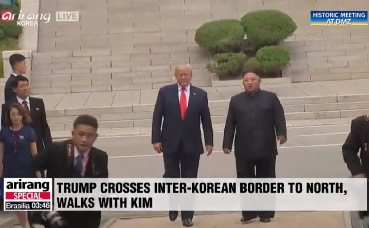 Ardınca Tramp və Kim Çen In hərbsizləşdirilmiş zonanın Şimali Koreya tərəfinə keçiblər və Tramp KXDR sərhədini keçən ilk Amerika prezidenti olub.