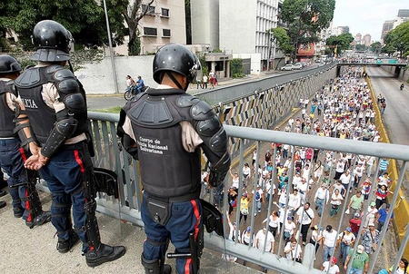 Bakı. 9 may. REPORT.AZ/ Venesuela Milli Qvardiyası ölkənin paytaxtı Karakasda müxalifət tərəfindən təşkil olunan yürüşün dağıdılması üçün gözyaşardıcı qazdan istifadə edib.