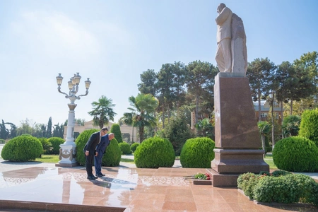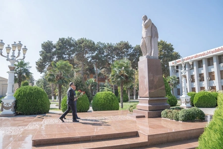 "Report" xəbər verir ki, qəbuldan öncə Ümummilli Lider Heydər Əliyevin şəhərin mərkəzində ucaldılan abidəsi ziyarət edilib, xatirəsi ehtiramla yad olunub.