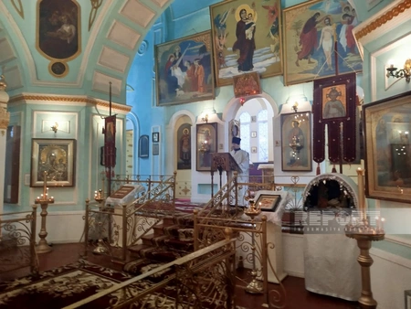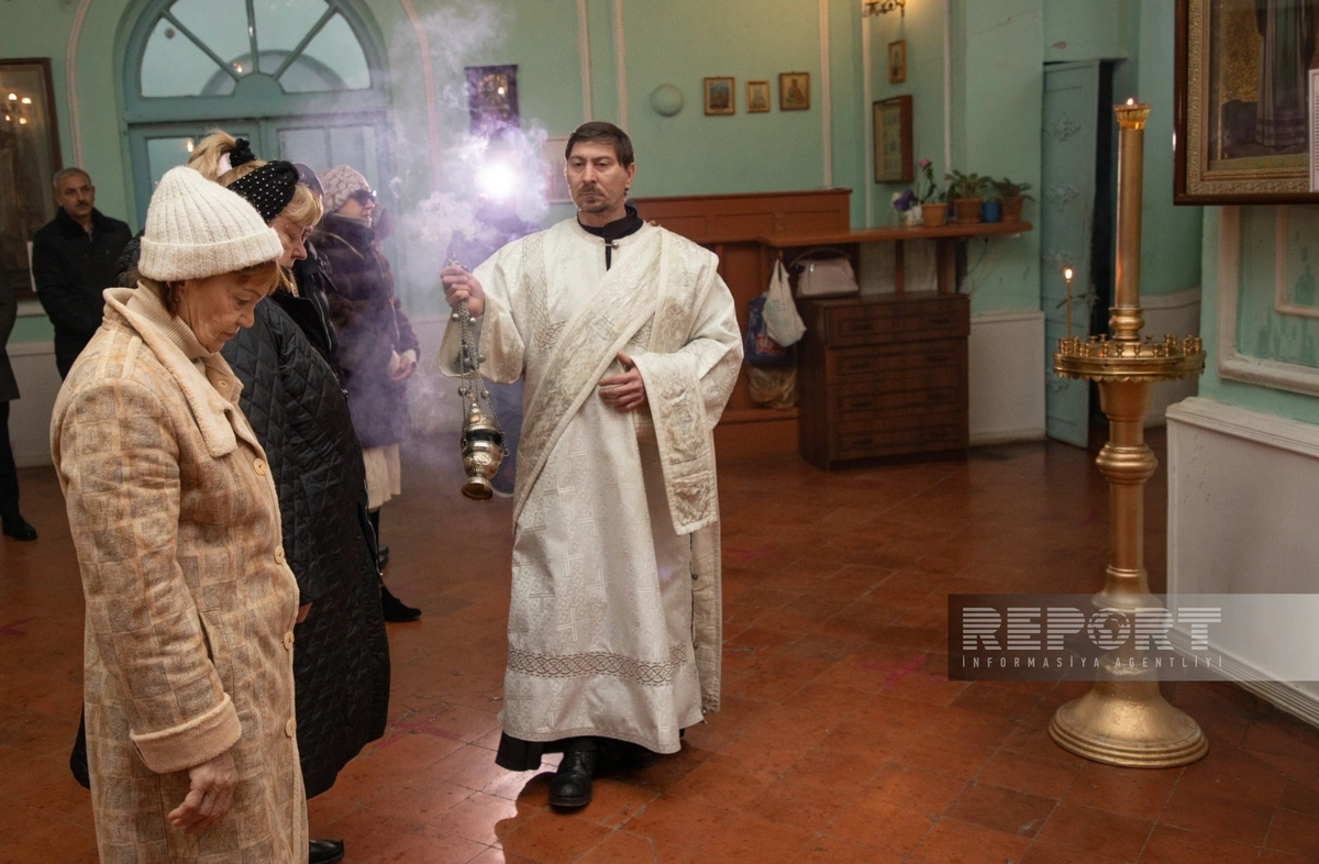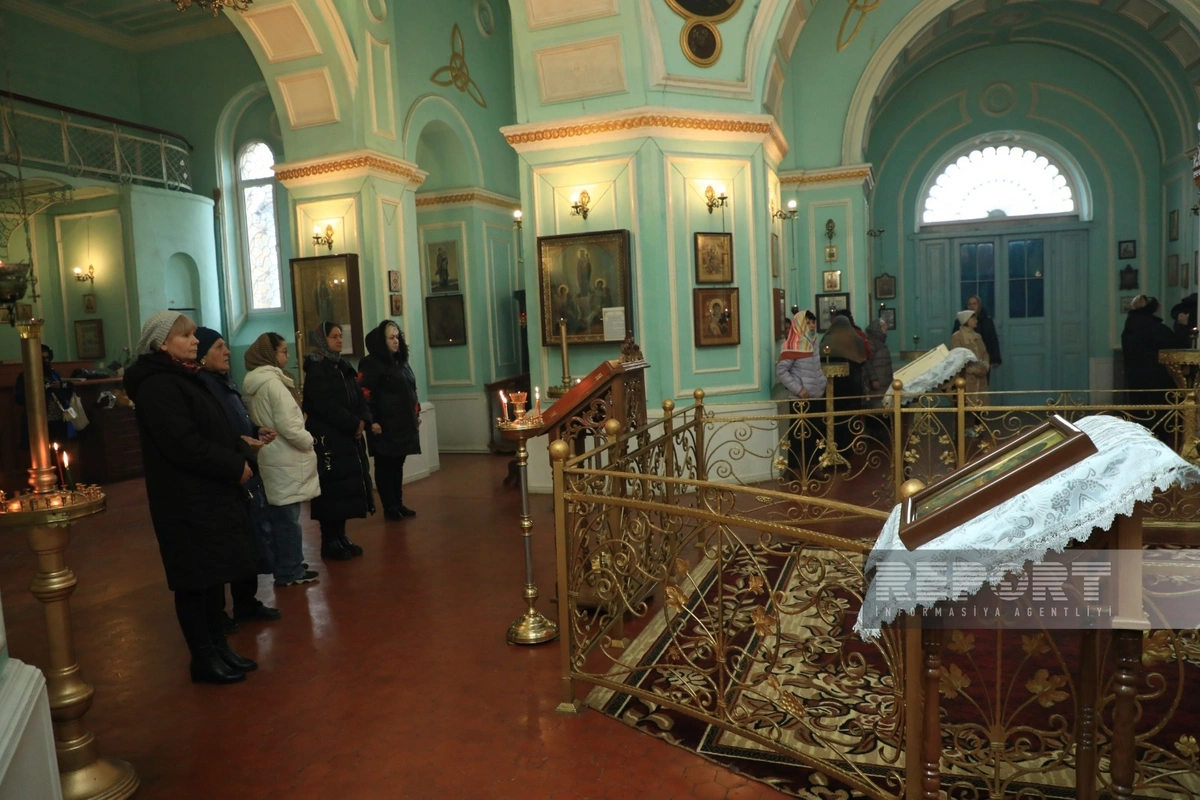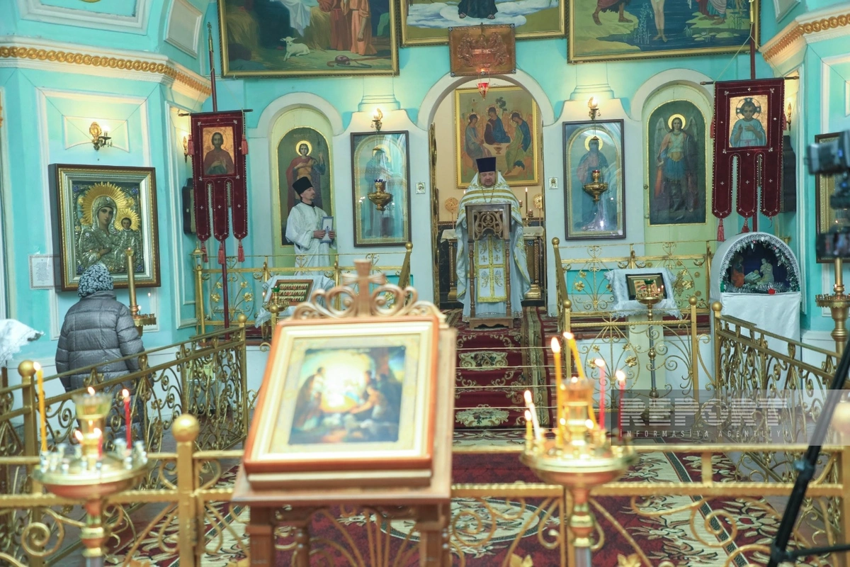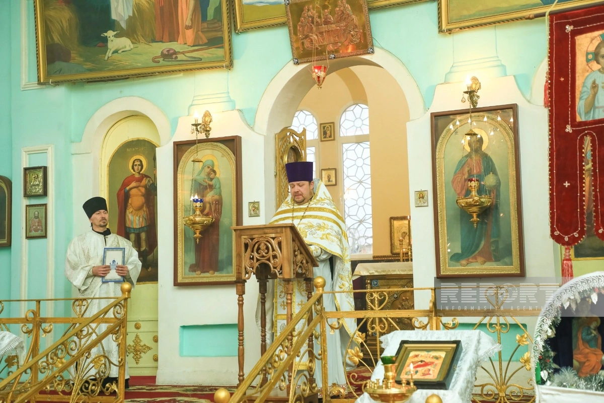 "Report"un Qərb bürosunun məlumatına görə, Milad bayramı Gəncə şəhərində Aleksandr Nevski adına Rus Pravoslav Kilsəsində keçirilir.