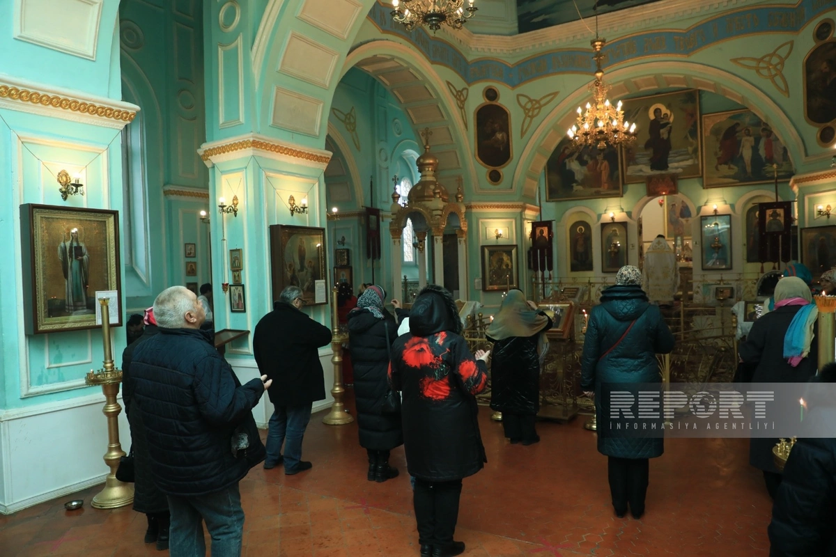 Pravoslavlar kilsədə şamlar yandıraraq sülh, əmin-amanlıq və xoşbəxtlik diləkləri ilə dualar oxuyub, xaç suyu içiblər.