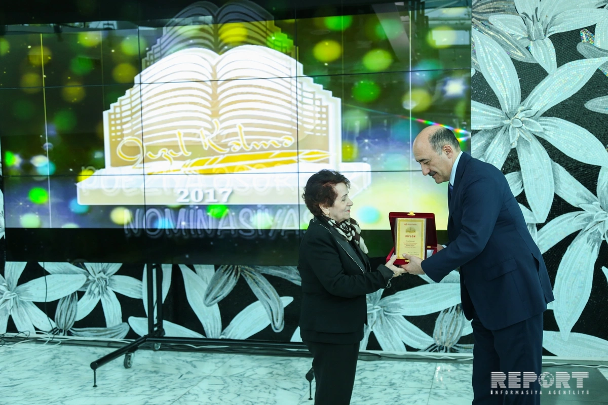 Bakı. 2 may. REPORT.AZ/ Mədəniyyət və Turizm Nazirliyinin təşkilatçılığı ilə keçirilən “Qızıl Kəlmə” Ədəbi Mükafatının 2017-ci il üzrə qaliblərinin mükafatlandırma mərasimi keçirilib.