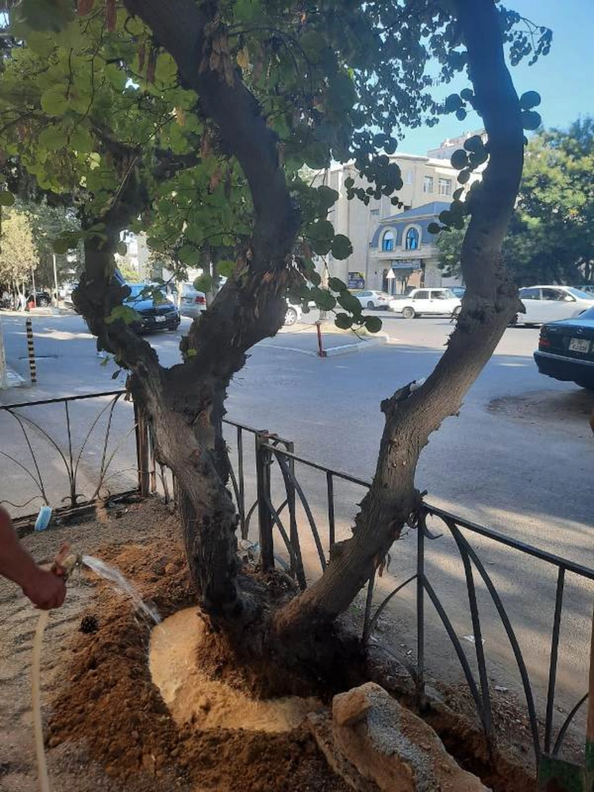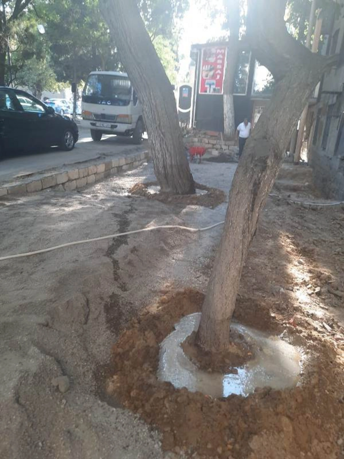 Bildirilib ki, ağaсların dibi betondan təmizlənib, ağaclara su verilmiş və ərazi nəzarətə götürülüb.