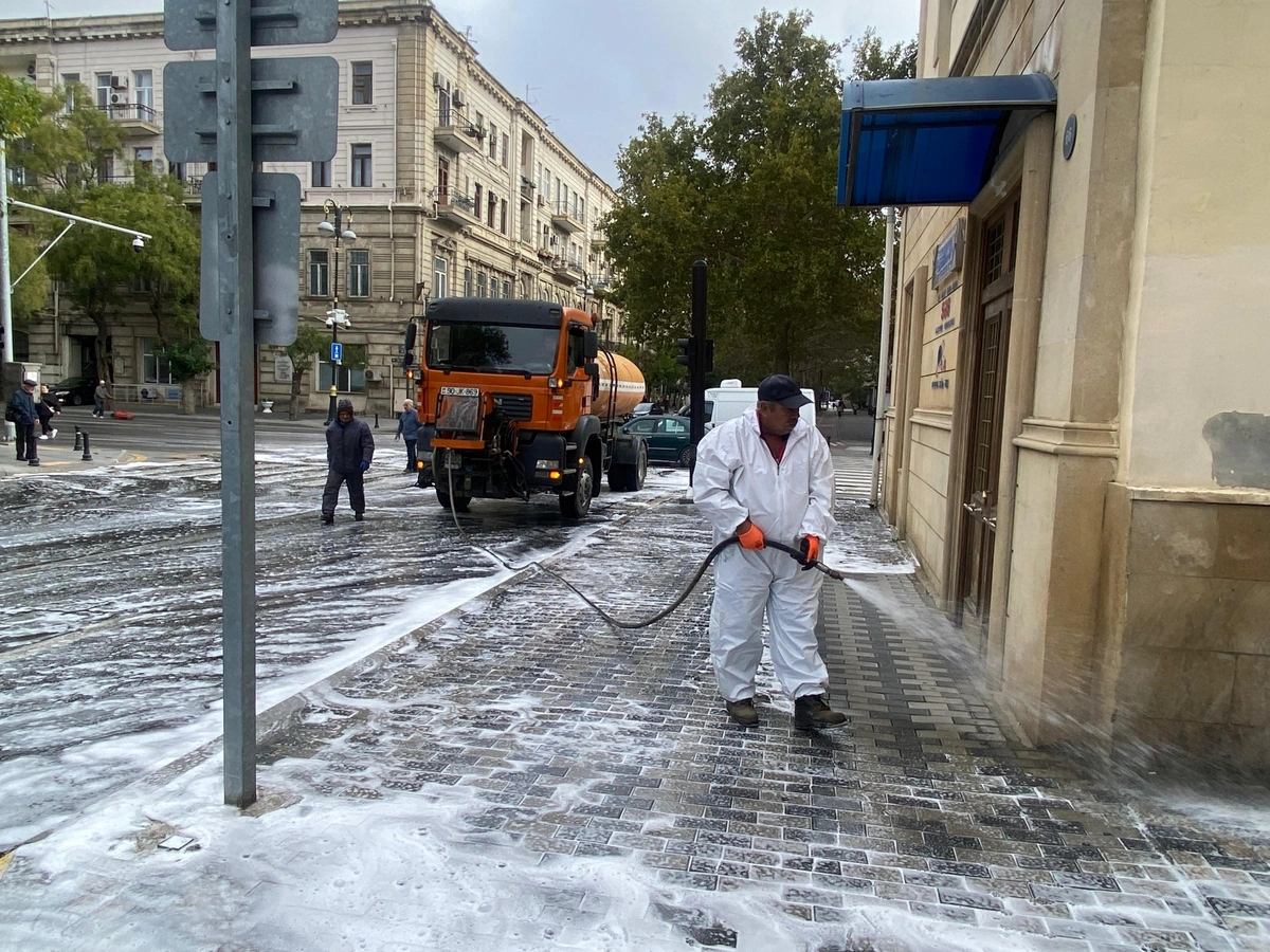 Səhər saatlarından etibarən Bakı Şəhər İcra Hakimiyyətinin kommunal təsərrüfat xidmətlərinin texnikası tərəfindən şəhərin 496 əsas küçə, prospekt və məhəllədaxili yolların yuyucu maddələrlə yuyulmasını təmin edilib və eyni zamanda genişmiqyaslı təmizlik və abadlıq işləri həyata keçirilib, yaşıllıqlara qulluq göstərilib.