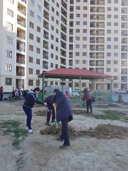 "Report" xəbər verir ki, aksiya zamanı jurnalistlərin yaşadığı binanın ətrafında ETSN-nin əməkdaşlarının və jurnalistlərin iştirakı ilə 200-dən çox müxtəlif cinsli ağac tingi əkilib.