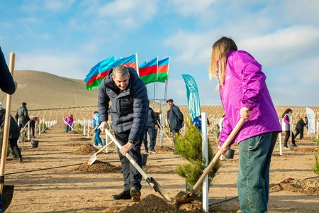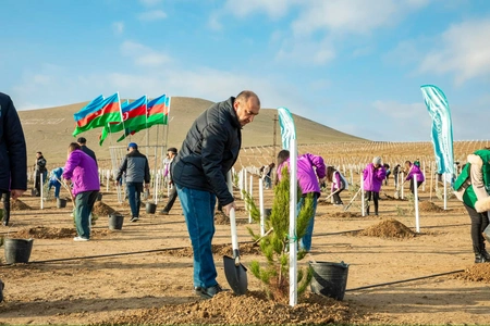 Aksiya çərçivəsində Abşeron yarımadasının torpaq-iqlim şəraitinə uyğun 2000-ə yaxın Eldar şamı və zeytun ağacı əkilib.