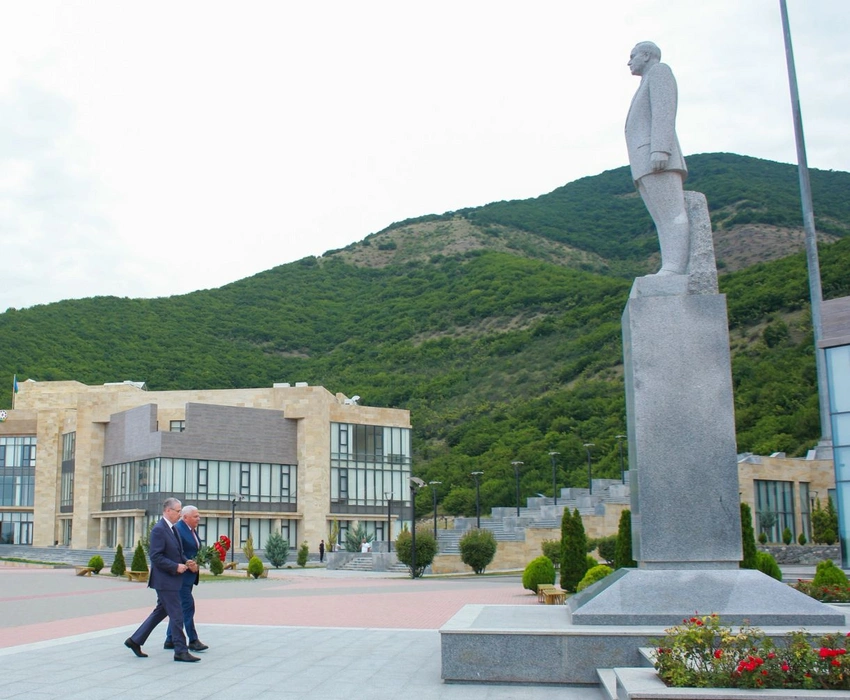 Qəbuldan əvvəl nazir və Şəki şəhər İcra Hakimiyyətinin başçısı Ulu Öndər Heydər Əliyevin abidəsini ziyarət edərək önünə gül dəstələri qoyub, dahi şəxsiyyətin əziz xatirəsinə dərin ehtiramlarını bildiriblər.