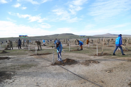 “Yaşıl Marafon” çərçivəsində hərbçilərin iştirakı ilə ağacəkmə aksiyası keçirilib