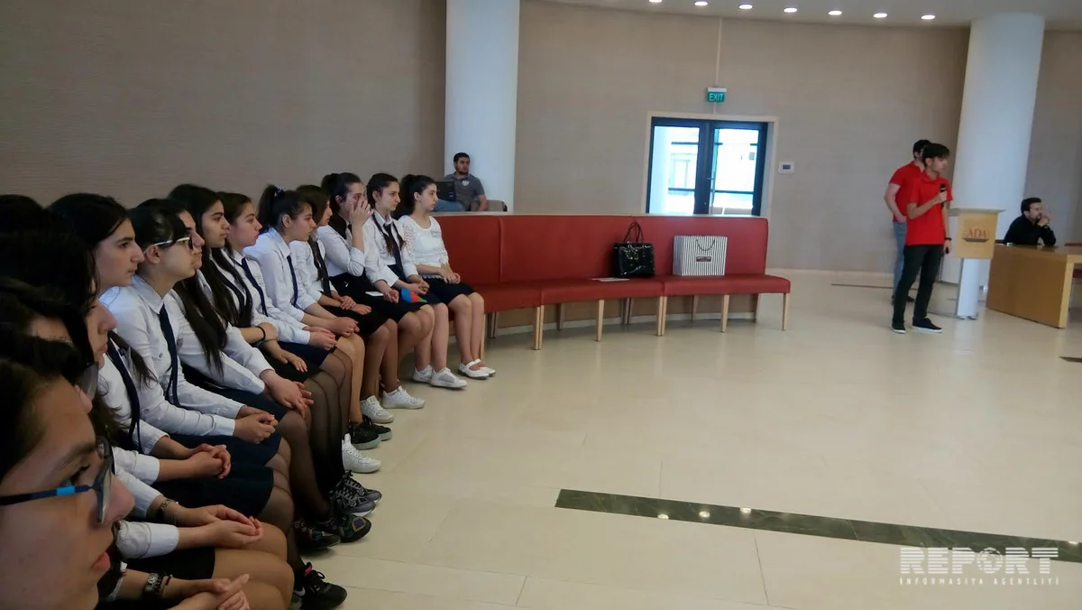 Ali məktəbdə olduqları müddətdə şagirdlər universitet həyatı ilə tanış olublar. Universitetin müəllimi Emin Abbasov şagirdlərə universitet və bəzi ixtisaslar barədə məlumat verib, prezentasiya ilə çıxış edib. Həmçinin universitetin fəal tələbəri şagirdlərlə tələbəlik dövrü fəaliyyətləri ilə bağlı fikirlərini bölüşüblər. Tədbir müzakirlələrlə davam edib, şagirdlər maraqlandıqları sualları universitet müəllimlərinə və tələbələrə ünvanlayıb.