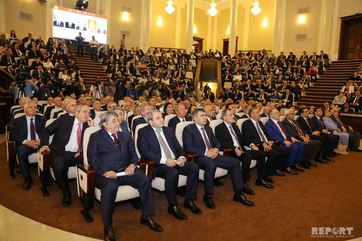 “Report” xəbər verir ki, toplantıdan öncə Prezident Administrasiyasının rəhbəri, akademik Ramiz Mehdiyev, Baş Nazirin müavini, hakim Yeni Azərbaycan Partiyası sədrinin müavini-icra katibi Əli Əhmədov, Təhsil naziri Ceyhun Bayramov, Prezident Administrasiyasının Humanitar siyasət məsələləri şöbəsinin müdiri Fərəh Əliyeva, ali məktəb rektorları və digər rəsmi şəxslər, ziyalılar elmi nailiyyətlər sərgisini ziyarət ediblər.