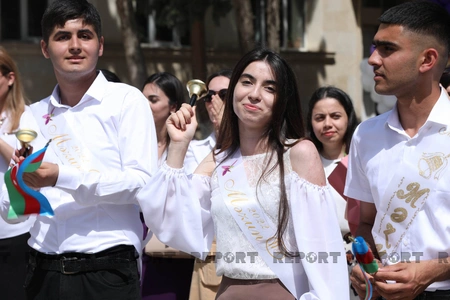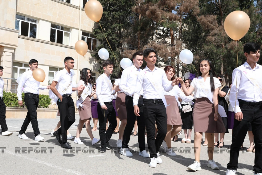 Sonda məktəblilər "Son zəng"i çalaraq təhsil illərini yekunlaşdırıblar.