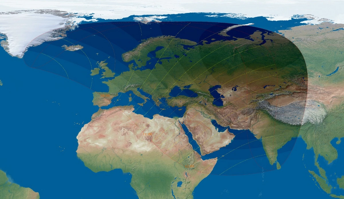 Bu, Avropanın əksər hissəsində, Afrikanın şimalında, Yaxın Şərqdə və Asiyanın qərbində müşahidə olunacaq.