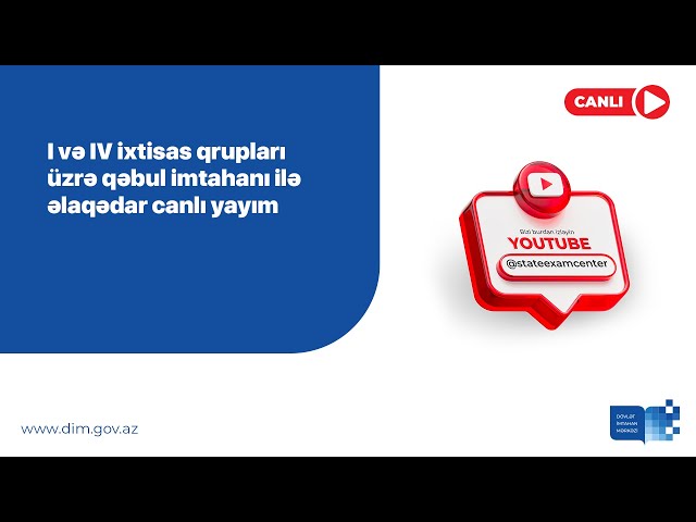 Saat 15:00-da Dövlət İmtahan Mərkəzinin (DİM) yutubdakı kanalı vasitəsilə canlı yayım edilib və mərkəzin məsul əməkdaşları, ekspertlər tərəfindən I və IV ixtisas qrupları üzrə qəbul imtahanlarında istifadə olunmuş test tapşırıqları ilə bağlı geniş izahat verilib, həmçinin qapalı və kodlaşdırıla bilən açıq tipli tapşırıqların düzgün cavabları təqdim olunub.