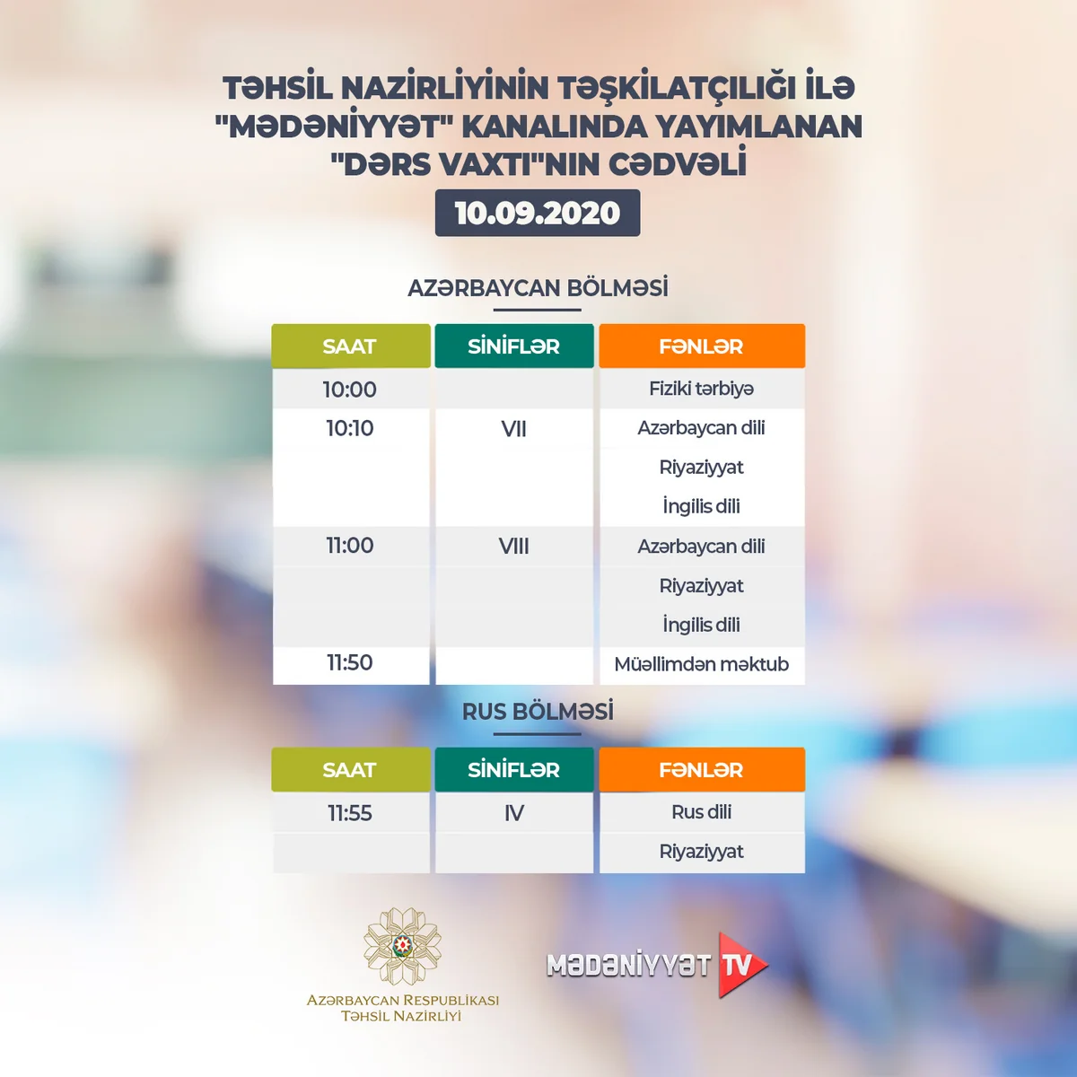 "Dərs vaxtı"nın 10 sentyabr cədvəli