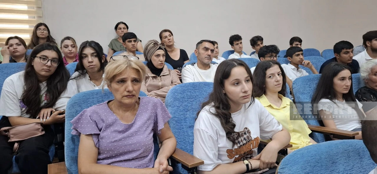 Xankəndidə yaradılan Qarabağ Universitetinin rektoru Şahin Bayramov Gəncədə şagird, valideyn və təhsil işçiləri ilə görüşüb.