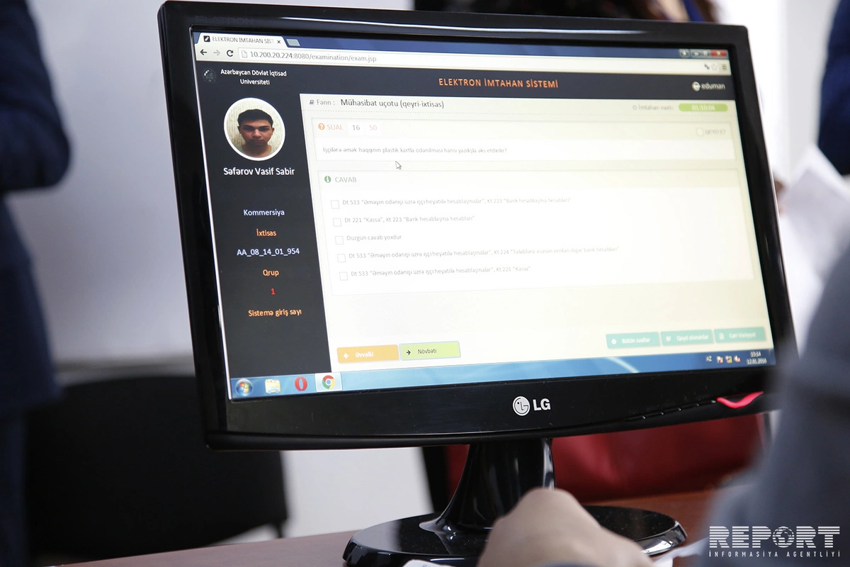 UNEC-in Tədrisin Keyfiyyətinin Qiymətləndirilməsi və İdarə Edilməsi Mərkəzinin direktoru Raqif Qasımov jurnalistləri imtahan prosesinin gedişi, nəzarət təlimatları ilə tanış edib. Onun sözlərinə görə, tələbələrə əvvəlcədən ümumilikdə 700-dən artıq sual və onların cavabı verilib: "Tələbə sualları cavablandırdıqdan sonra "bitir" düyməsinə basan kimi imtahanda göstərdiyi nəticəsi ilə tanış olurlar. İmtahan bitdikdən sonra cavablar və tələbələrin yekun nəticələri dərhal onların şəxsi kabinetində qeyd olunur. Bununla da hətta valideynlər belə övladlarının imtahan nəticələri ilə istənilən zaman tanış ola bilər. Bütün bunlar imtahanların şəffaf keçməsinə zəmin yaradır".