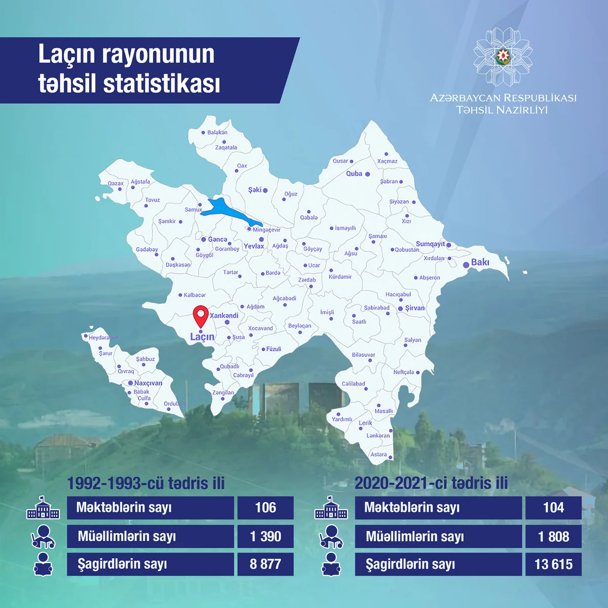 Təhsil Nazirliyi Laçın rayonunun təhsil statistikasını açıqlayıb.