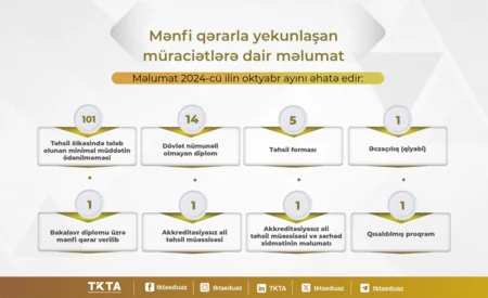 Oktyabr ayı üzrə xaricdə təhsil alan 540 nəfərin diplomu tanınıb, 125 nəfərin müraciəti isə mənfi qərarla yekunlaşıb.