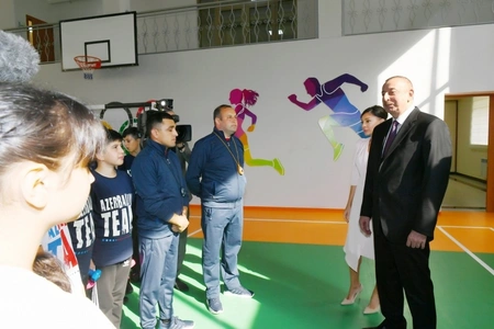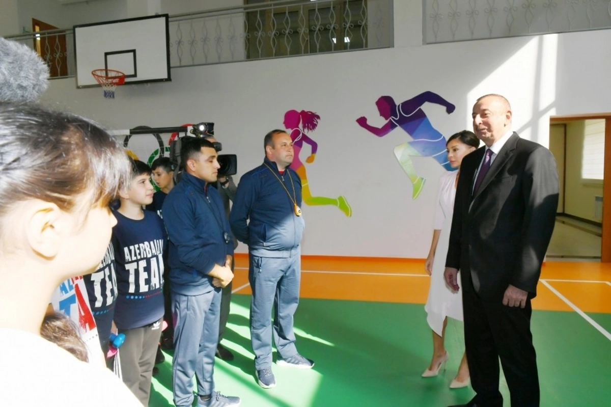 Prezident İlham Əliyev və birinci xanım Mehriban Əliyeva yeni tədris kompleksinin idman zalında, hərbi otaqda, ekosinifdə, informatika otağında, kimya kabinetində, ayrı-ayrı sinif otaqlarında və yeməkxanada yaradılan şəraitlə tanış oldular, müəllimlər və şagirdlərlə söhbət etdilər, onlara yeni tədris ilində uğurlar arzuladılar.