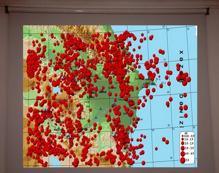 “Zəlzələlərin tədqiqatı bürosu”nun rəisi, Yer Elmləri üzrə fəlsəfə doktoru Səidə İsmayılova öz çıxışında bildirib ki, 2022-ci ilin birinci yarısında 42 rəqəmsal məlumatlar əsasında seysmikliyin analizi aparılıb.
