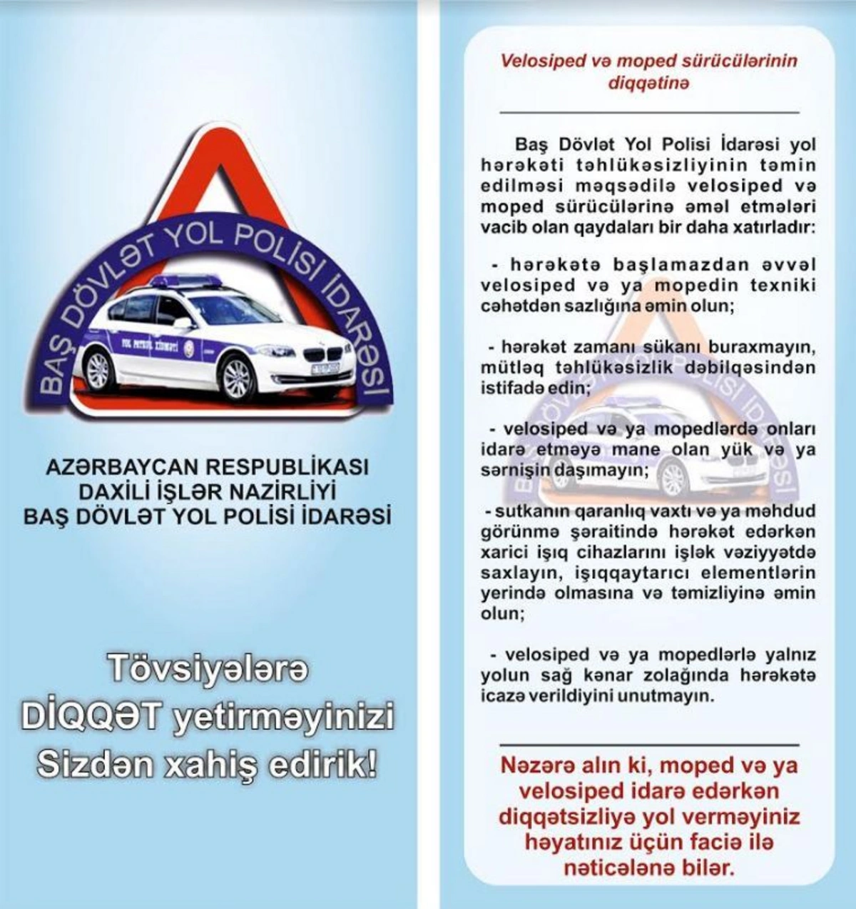 Guliyev said the educational and propaganda events held by the Department this time covered cyclists and moped riders, the number of which is growing throughout the country.