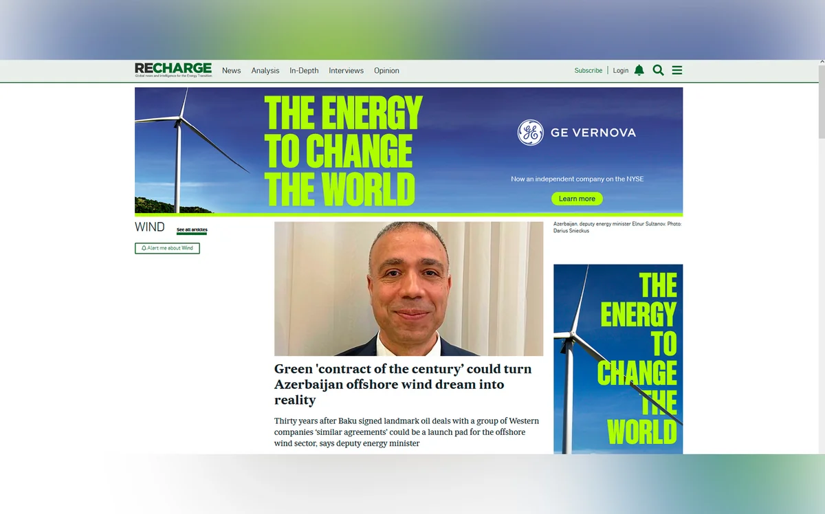 Capturing commercial-scale power from Azerbaijan's rich sea winds – seen as central to its ambitions to shift from offshore oil & gas production towards renewables in the coming decades – could call for partnerships with international clean-energy developers similar to the "Contract of the Century” signed with a cadre of Western petro-giants in 1994, according to one of the Caspian nation's top officials, Report informs citing an article by Darius Snieckus published by Recharge.