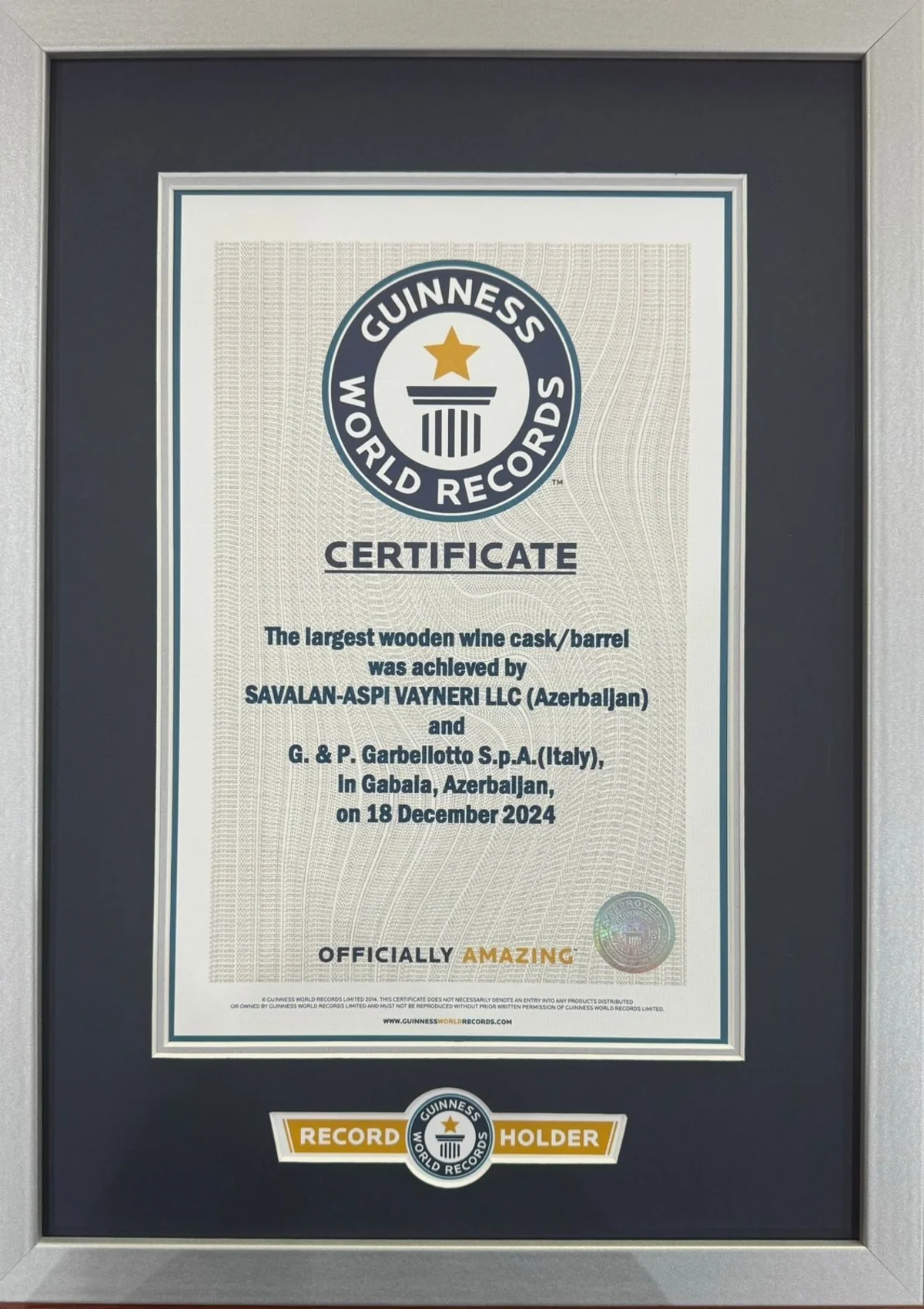 On December 18, 2024, a wine barrel at the SAVALAN – ASPI Winery factory was entered into the Guinness World Records™ as the ‘World’s Largest Wooden Wine Barrel’.