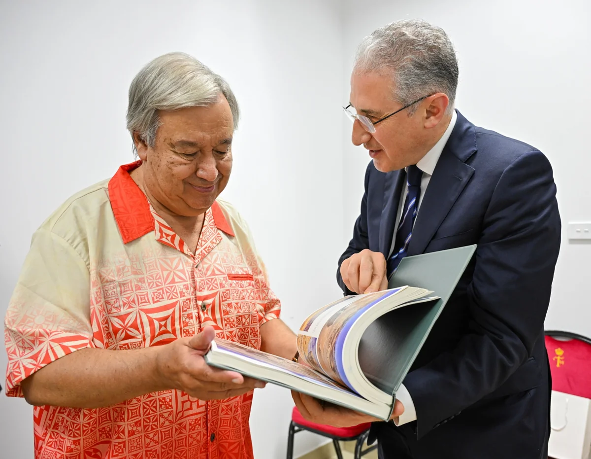 Mukhtar Babayev, the Azerbaijani Minister of Ecology and Natural Resources, President-Designate of COP29, met with UN Secretary-General Antonio Guterres on the sidelines of the Pacific Islands Forum held in Tonga, according to the COP29 official X account, Report informs.