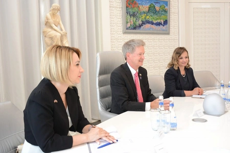 Minister of Culture of Azerbaijan Anar Karimov met with Ambassador Extraordinary and Plenipotentiary of United Kingdom James Sharp on the occasion of the end of his term of office in Azerbaijan. British Council Country Director for Azerbaijan Nargiz Hajiyeva and arts manager Dilara Ibrahimova also participated in the meeting, Report informs.