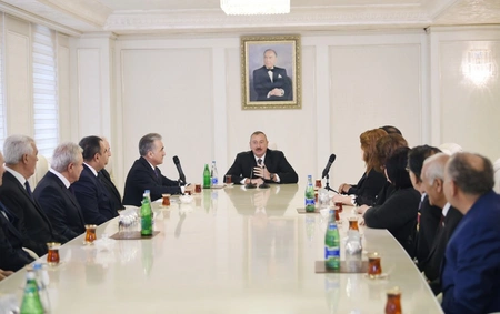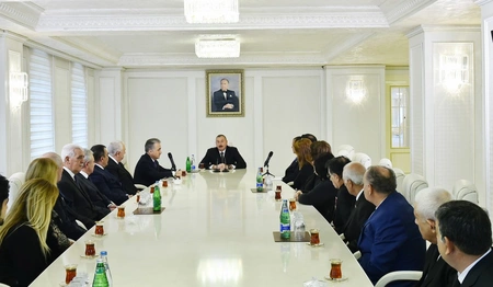 President Ilham Aliyev then met with representatives of the general public of the city of Ganja and posed for photographs with them.