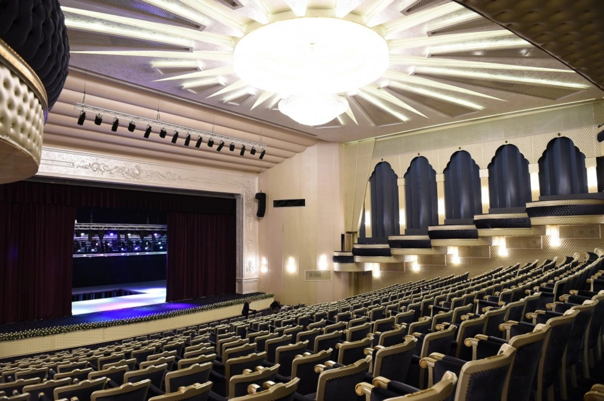 The head of state was informed that the six-storey building features administrative, training, make-up, director`s and recreation rooms, and a canteen. The building also houses a 1200-seat concert and a 300-seat conference halls, 11 boxes, including one VIP.