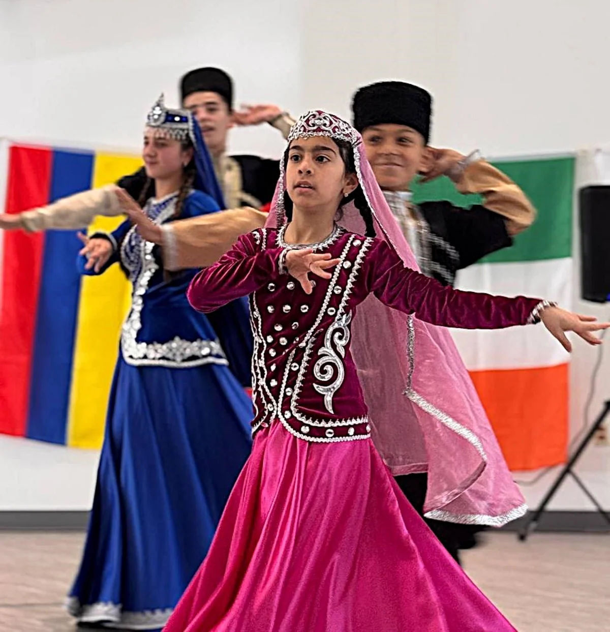 The Azerbaijani dance ensemble, operating under the Northern California Cultural Society and led by renowned choreographer Rozi Almammadova, performed Jangi, Ag Chicheyim, and Yalli dances, which were met with applause from participants.