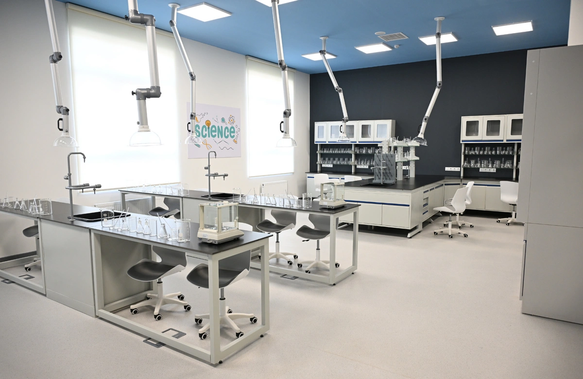Constructed as part of the “First State Program on the Great Return to the Liberated Territories of the Republic of Azerbaijan,” the school building comprises 43 classrooms, 16 administrative offices, and a STEAM (Science, Technology, Engineering, Arts, and Mathematics) center with seven rooms. It also features modern physics, chemistry, and biology laboratories, an informatics room, a pre-military training room, a library, a museum, a 352-seat canteen, a 468-seat assembly hall, two indoor sports halls, as well as a football pitch and basketball court for teachers and students.