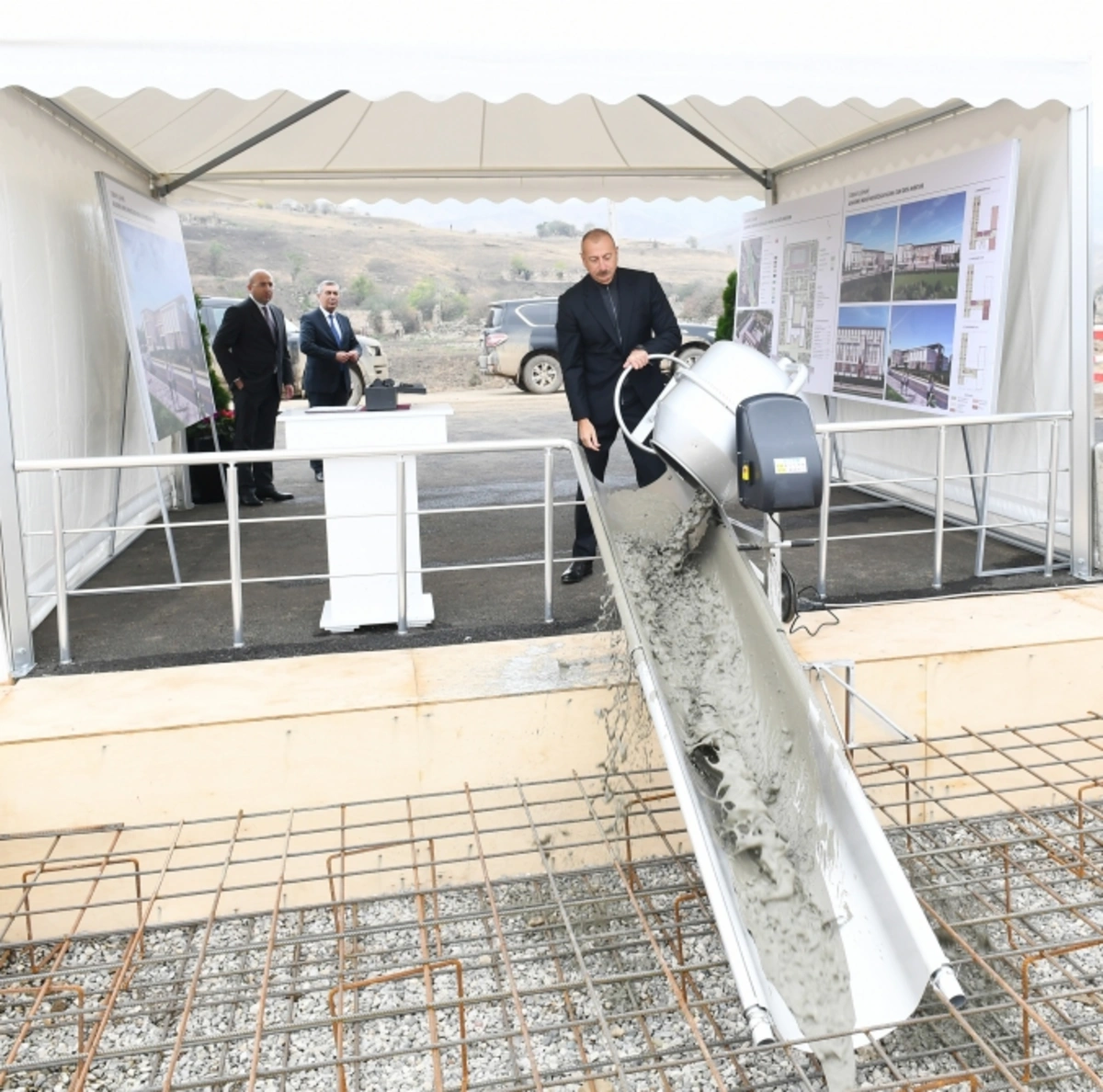 The head of state laid the foundation stones for Jabrayil District Central Hospital, a school building, and the first multi-apartment residential building in Jabrayil.