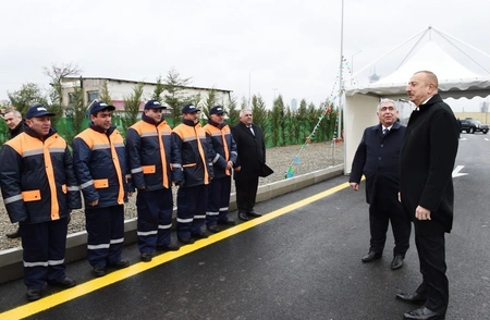President attends opening of newly-built road connecting Ziya Bunyadov avenue with Balakhani-Binagadi highway