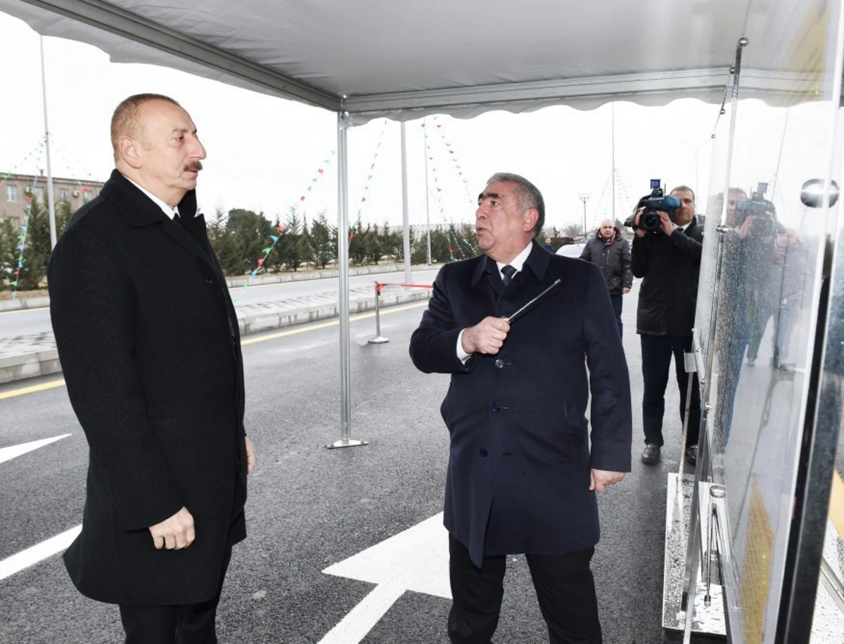 President Ilham Aliyev cut the ribbon symbolizing the opening of the road.