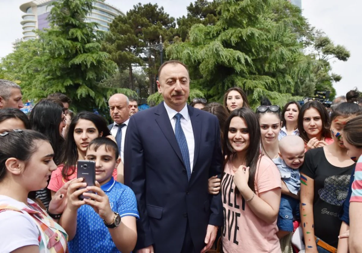 Ilham Aliyev attends the opening of Baku White City boulevard