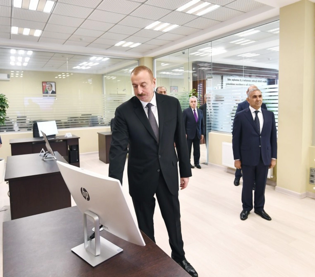 Report informs that the head of state cut the ribbon symbolizing the opening of the center and familiarized himself with the conditions created here.