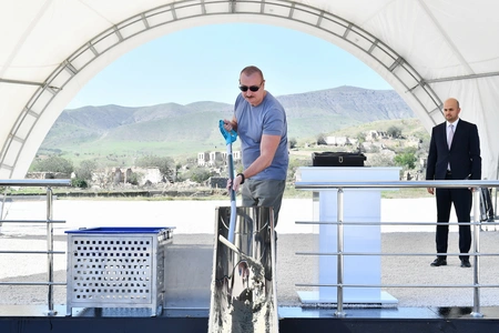 President Ilham Aliyev laid a foundation stone for the administrative building.