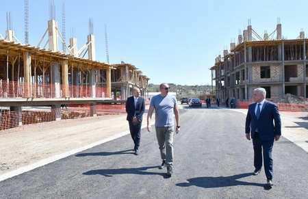 The head of state laid a foundation stone for an administrative building in the city of Jabrayil and examined the construction progress of the Jabrayil Residential Complex – the first residential quarter being built in the city by the State Housing Construction Agency.