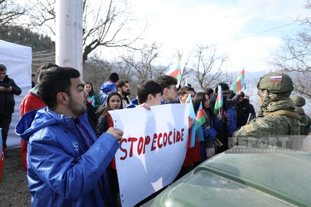 The protests on the Shusha-Khankandi road, which are under the temporary control of Russian peacekeepers, continue with slogans such as "The greatest soldier, our soldier!", "Martyrs are immortal, our land is indivisible!", "Karabakh is Azerbaijan!".