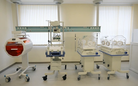 Construction of the hospital, spanning 4.9 hectares, commenced in 2016 and concluded in 2023. The six-storey hospital consists of three blocks. The medical facility houses various departments, including therapy, pediatrics, neurology, general surgery, gynecology, traumatology, ENT (ear, nose, and throat), infectious diseases, radiodiagnostics, admissions, laboratory, emergency medical care, maternity, postpartum physiology units, and a department for pregnancy pathology.