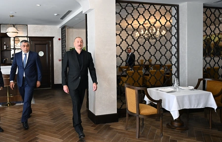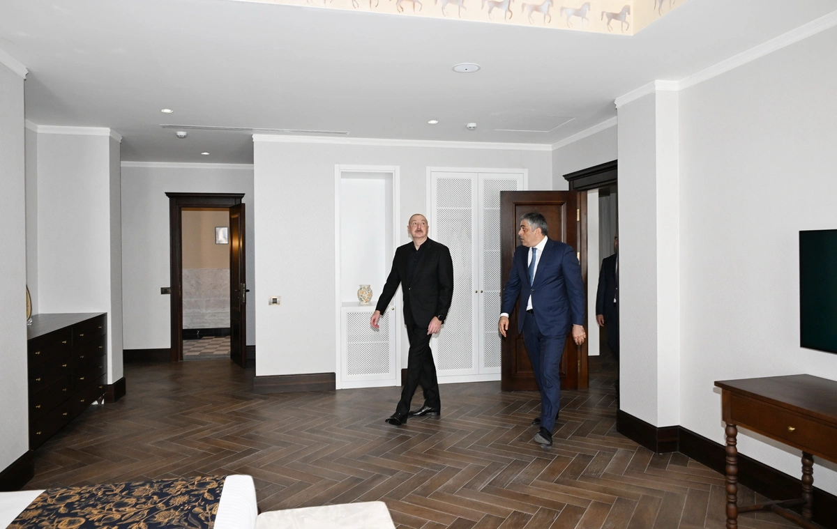 President of the Republic of Azerbaijan Ilham Aliyev attended the ceremony to reopen the "Garabagh" hotel in the city of Khankandi after its major overhaul and restoration, Report informs via AZERTAC.