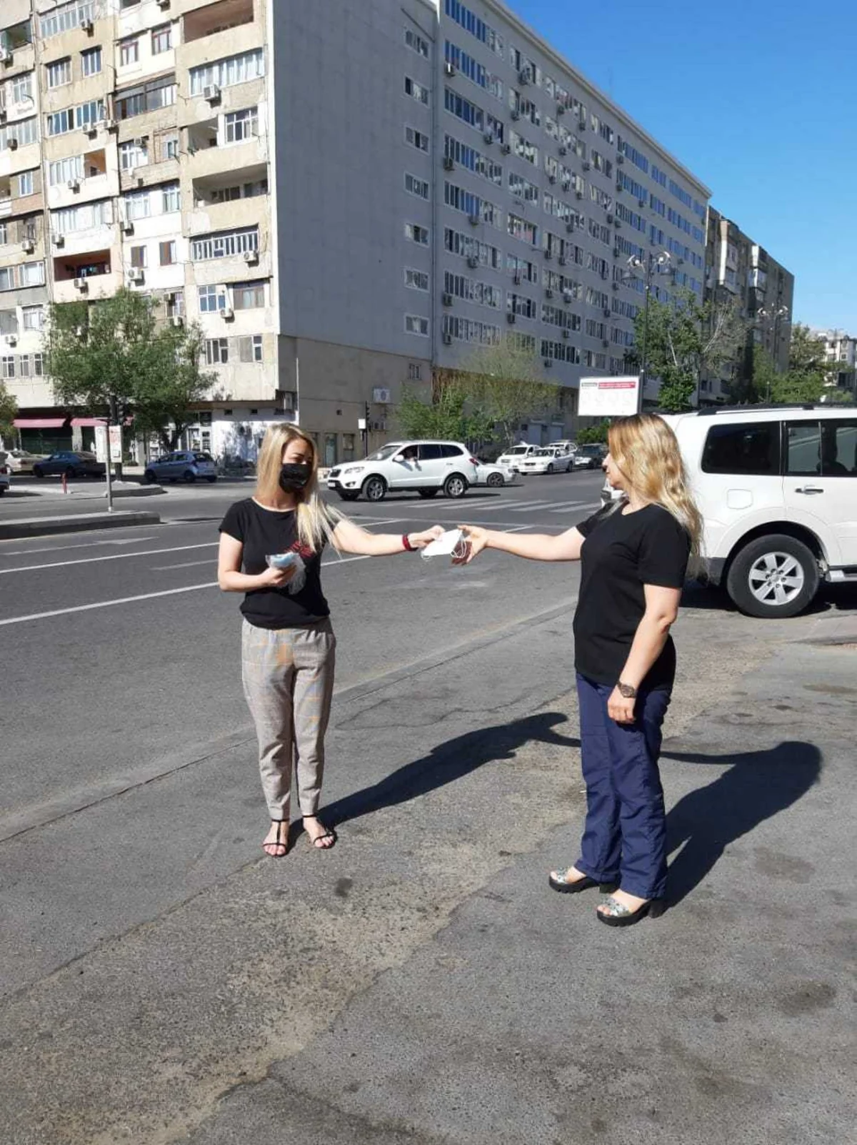 Members of media outlets involved in the action distributed masks to the people in the neighboring areas and reminded the need to use protective equipment, maintain social distance, and follow hygienic rules.