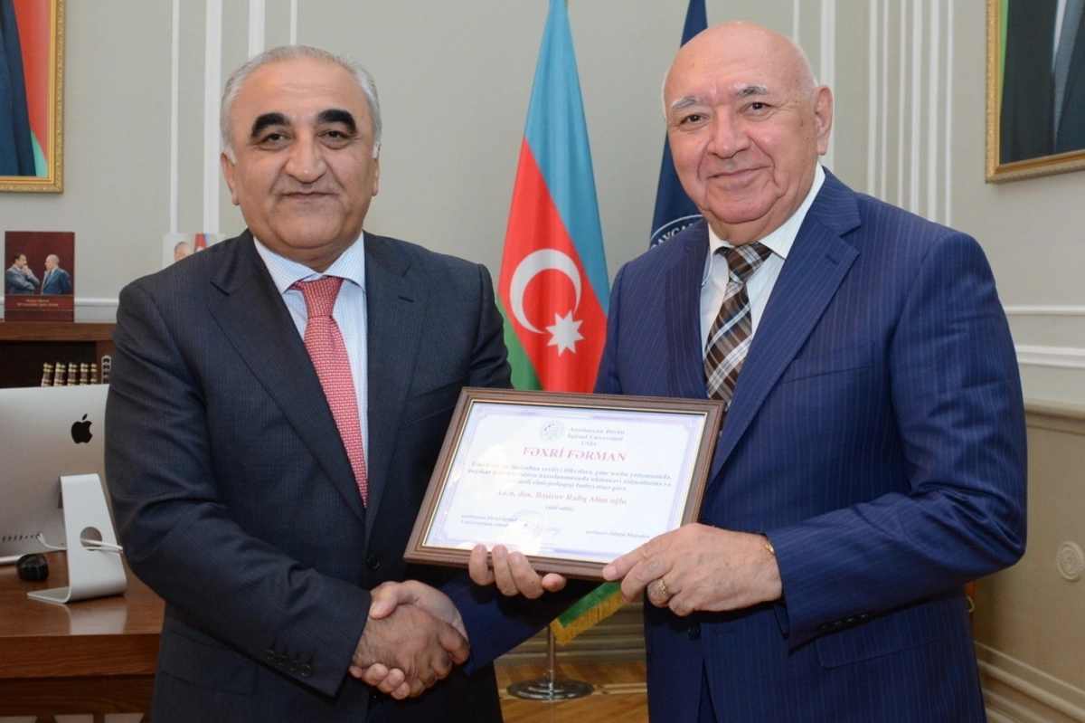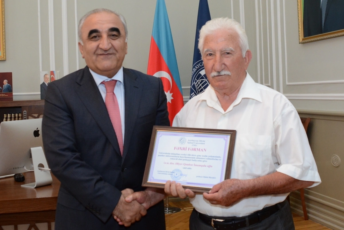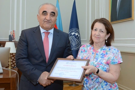 In the end of the meeting, the teachers were awarded Honorary Diploma for their services and efficient pedagogical performances made in the development of the university, upbringing the younger generation and development of highly skilled professionals.