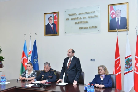 Police colonel of Khatai district of the Ministry of Internal Affairs, Muradali Babayev extended his gratitude to BHOS management for organization of such a significant workshop noting the excellent conditions available at the higher school for students. Then M. Babayev talked about activities of law-enforcement authorities in order to prevent drug addiction, illegal turnover of drugs, the means of solving drug addiction problem at international level, the means of prevention, the spread of the drugs and the way drug addiction effected the society.