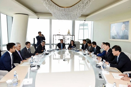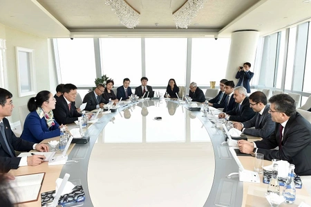 A member of the CNPC Managing Board Wang Shihong expressed gratitude for the warm reception, stating today's first visit to the SOCAR new office and congratulated R.Abdullayev on this occasion, wished success to SOCAR in its activity in the new administrative building. He mentioned the memorandum signed between SOCAR and CNPC on establishment of Gas Processing and Petrochemical Complex in Azerbaijan (SOCAR-GPC) as an important stage in the development of cooperation between the two companies, also, noted great importance by the Chinese government to this project. Stressing interest of Chinese financial institutions, funds and investment companies to the project, Wang Shihong noted today's visit to Azerbaijan as its sign. The guest said that the Chinese company is interested in further expansion of cooperation with SOCAR and in wider representation in SOCAR projects.